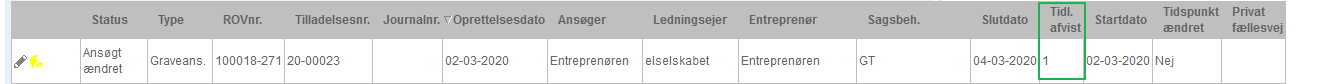 På denne måde får du vist ’Tidl. Afvist’ felt i oversigten, så er de nemme at følge. Her vises antal ’Tidl. Afvist’ altså antallet af tidligere afvist retableringer.