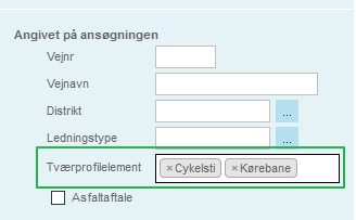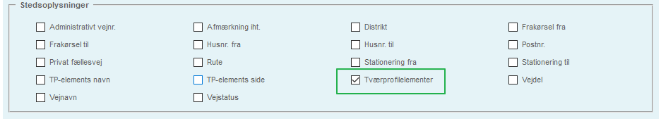 Har den egenskab at den viser samtlige tværprofilelementer på en sag. Er der flere steder på en sag viser dette felt den unikke kombination af de tværprofiler der er på stederne.