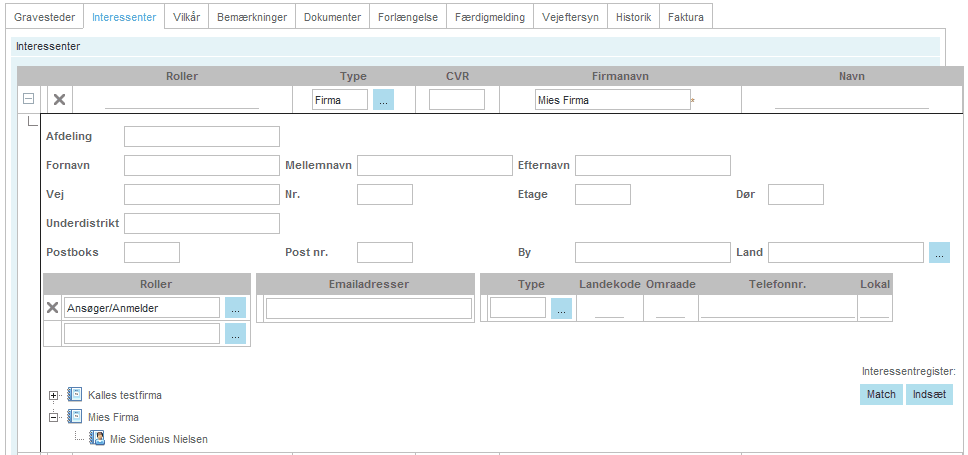 og udfyld relevante felter, under Roller vælges hvilke(n) roller personen/firmaet har