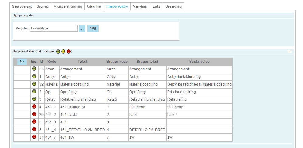 Grøn: Fælles (koder er oprettet som fælles systemkoder. Kan anvendes af alle)