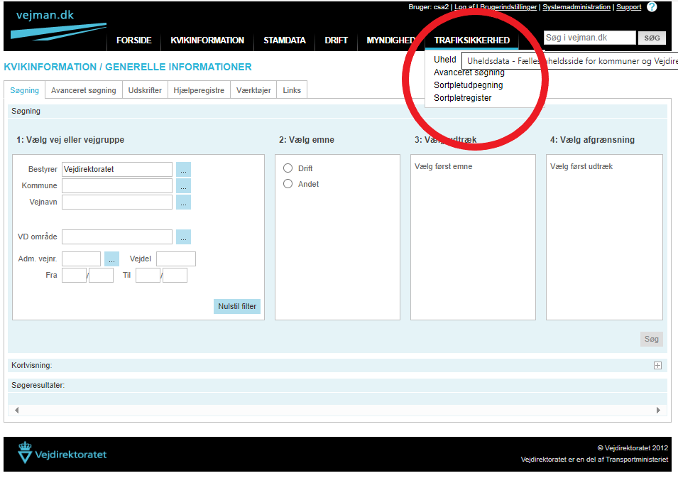 For at kunne anvende sortpletudpegning er det en forudsætning, at veje og kryds er registreret i vejman.dk, og at ulykkerne er stedfæstet på strækninger og i kryds.