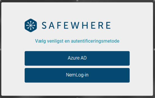Figur 2: Start programmet - vælg "Azure AD" hvis du er ansat i Vejdirektoratet og ”NemLog-in” som ansat i en kommune.