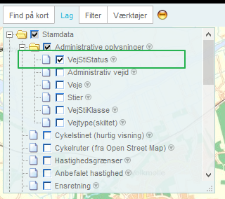 Klik på stedsikonet ud for vejnavnet og kortet åbnes