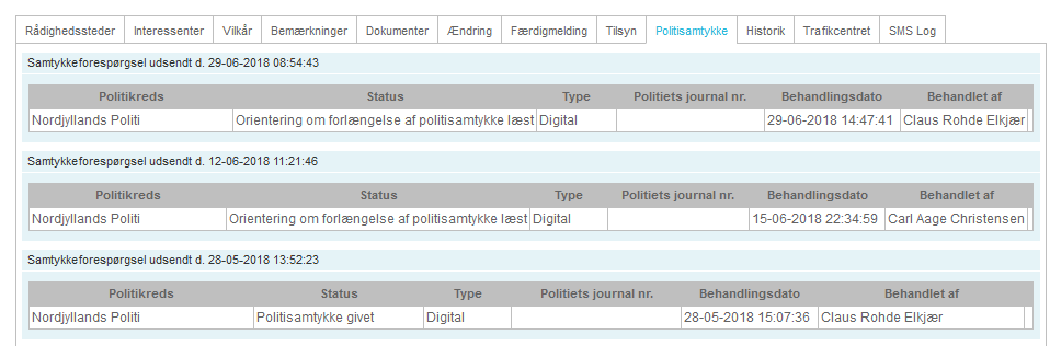 Klik på “Vis/ajourfør tilladelse” for at åbne sagen i en nye fane. Sagen kan screenes for eventuelle konflikter og fanen lukkes igen
