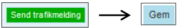 Vær opmærksom på, at et klik på "knappen" Send trafikmelding kun sætter et flueben i feltet Trafikudmeldes. "Knappen" Aflys trafikmelding fjerner fluebenet igen. Det er først, når du klikker på knappen Gem oven for fanebladet, at alle dine indtastninger på fanebladet bliver gemt. Samtidig sendes trafikmelding automatisk, hvis der vel at mærke er et flueben i feltet Trafikudmeldes.