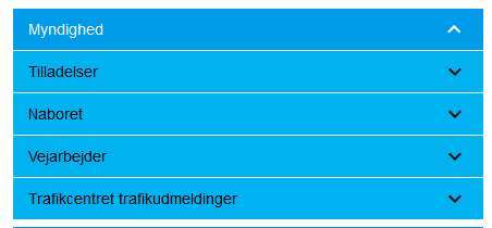 Menuen: Fx Myndigheder, der nu er lidt mere mørkeblå, når den er valgt, åbner flere under-menuer.