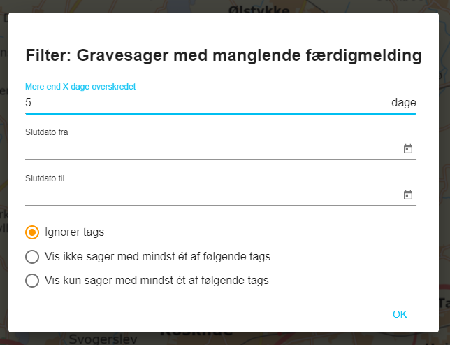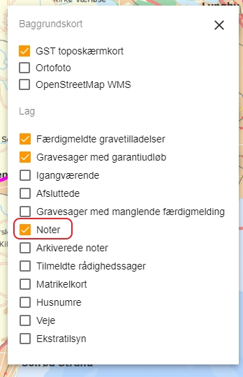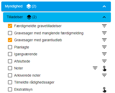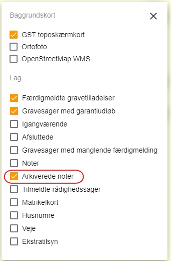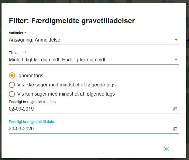 Filter for laget ”Færdigmeldte gravetilladelser”
