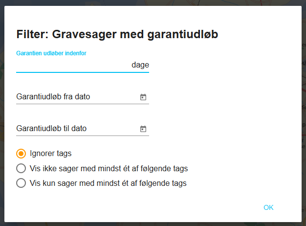 Garantien udløber indenfor: Antal dage indenfor hvilken sagernes garanti udløber.