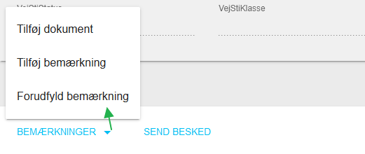 Her kan du tilføje et dokument (herunder et billede), en bemærkning , skrive en forudfyldt bemærkning der vil dukke op som forslag til teksten næste gang du vil tilføje en bemærkning til sagen, eller sende en besked, som vist nedenfor.
