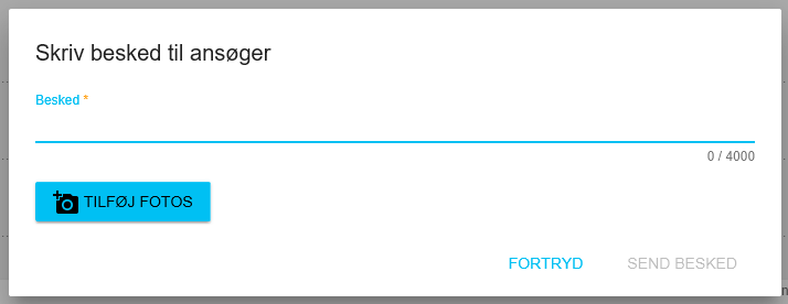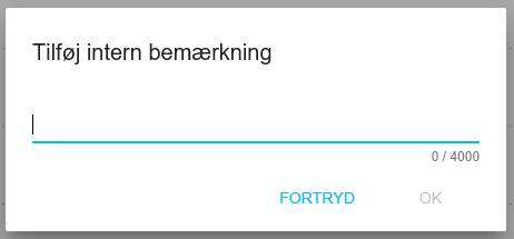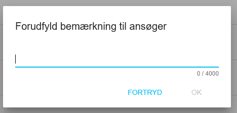 Læg mærke til at bemærkningen er intern. Det vil sige den kan ikke sendes til ansøger. Der er plads til 4000 tegn.