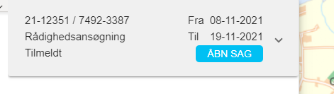Trykker/klikker man på åben, åbner en konkret sag op. .
