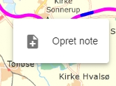 Noter: Her kan man aktivere muligheden for at indsætte en note et sted på vejnettet (se ikonen med en finger der peger på skærmen).
