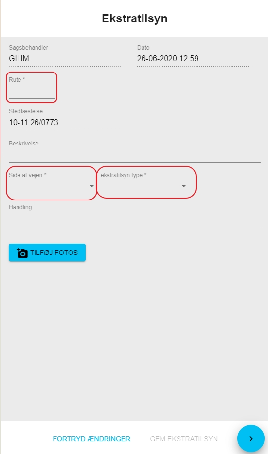 Der er 3 obligatoriske felter, der skal udfyldes for at kunne gemme Ekstra Tilsynet.