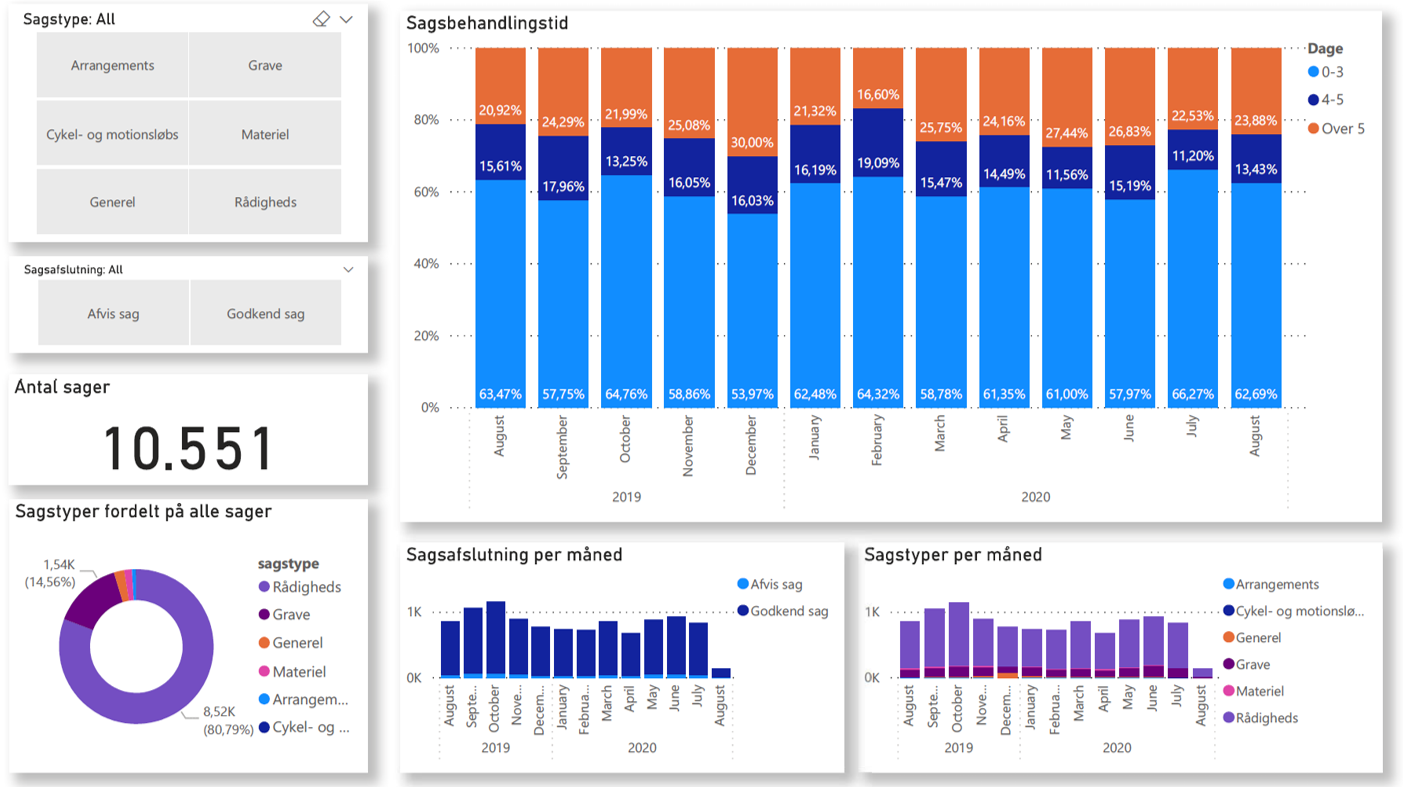 Der frigives i forlængelse af http://vejman.dk version 2.8 en forbedret version af web-appen ”Ledelsesinfo”, med Microsoft PowerBI som rapportmotor. Denne forbedring afstedkommer at rapporterne, foruden et mærkbart grafisk løft, nu også er blevet interaktive. Det betyder at I som brugere af løsningen bl.a. har fået flere filtreringsegenskaber, samt muligheder for at ”dykke ned” i informationerne ved at klikke på det ønskede datasæt. I praksis betyder det, at I har muligheder for eksempelvis at begrænse eller udvide perioden man undersøger, eller vælge hvor mange sagstyper, og hvilke man ønsker, skal indgå i statistikken.