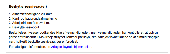 Er der indtastet beskyttelses niveauer i ansøgningen, vil disse fremgå af tilladelsen.