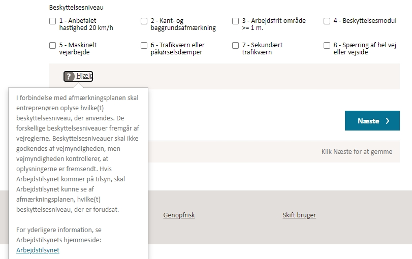Der er ligeledes lavet en hjælpetekst på ROV til beskyttelsesnivauerne.