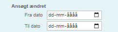 De to datofelter (fra og til) fungerer uafhængigt af hinanden. Hvis man udfylder fra-feltet, så filtreres listen til sager som er ansøgt forlænget efter fra-datoen. Hvis man udfylder til-feltet, så filtreres listen til sager som er ansøgt forlænget før til-datoen.