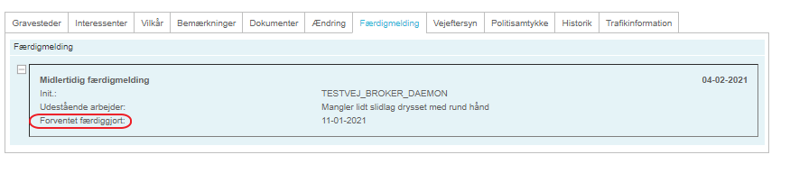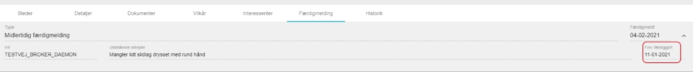 På fanen Færdigmelding er der tilføjet et felt til datoen for forventet færdigjort
