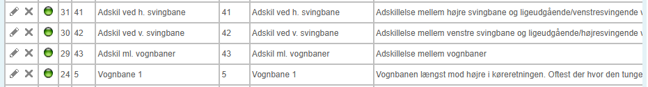 Vognbane-betegnelser bør følge Vejdirektoratets fælles vognbanedefinitioner, derfor er der oprettet tre nye feltværdier i hjælpetabellen Tværprofilelement: