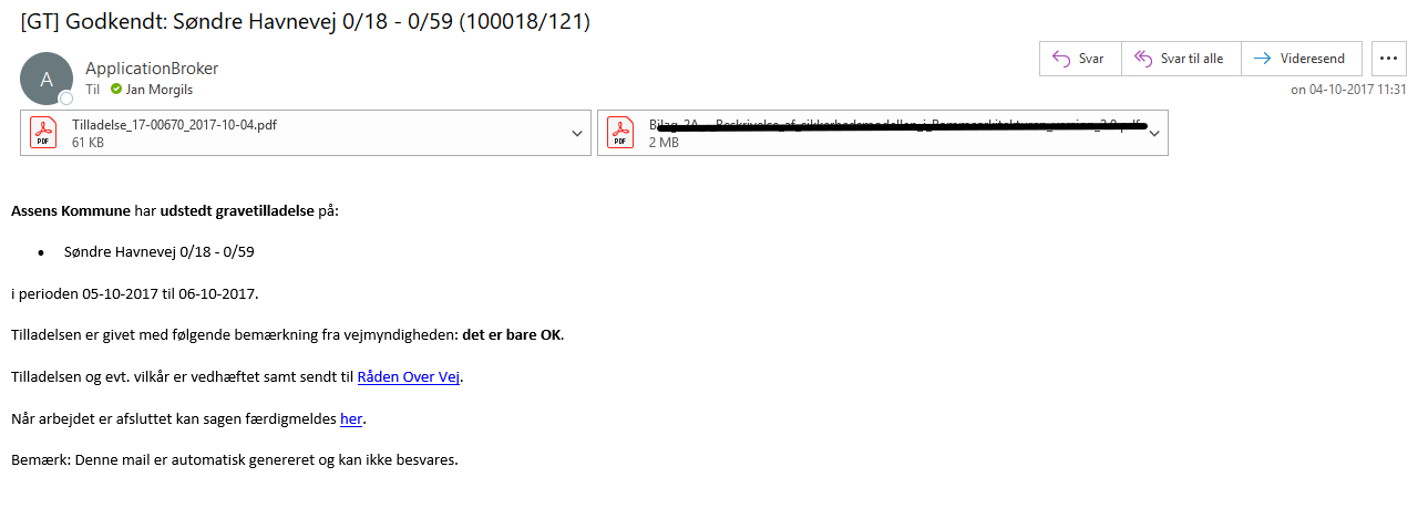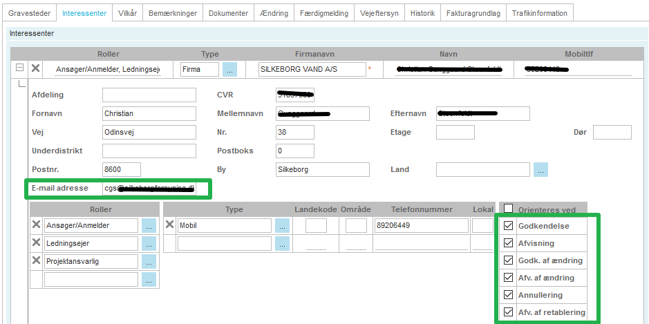 Eller ved en orientering fra http://vejman.dk 's interessent fane. Her kan man sætte op ved hvilke begivenhed, der skal sendes en mail til ansøger og ledningsejer i dette tilfælde.