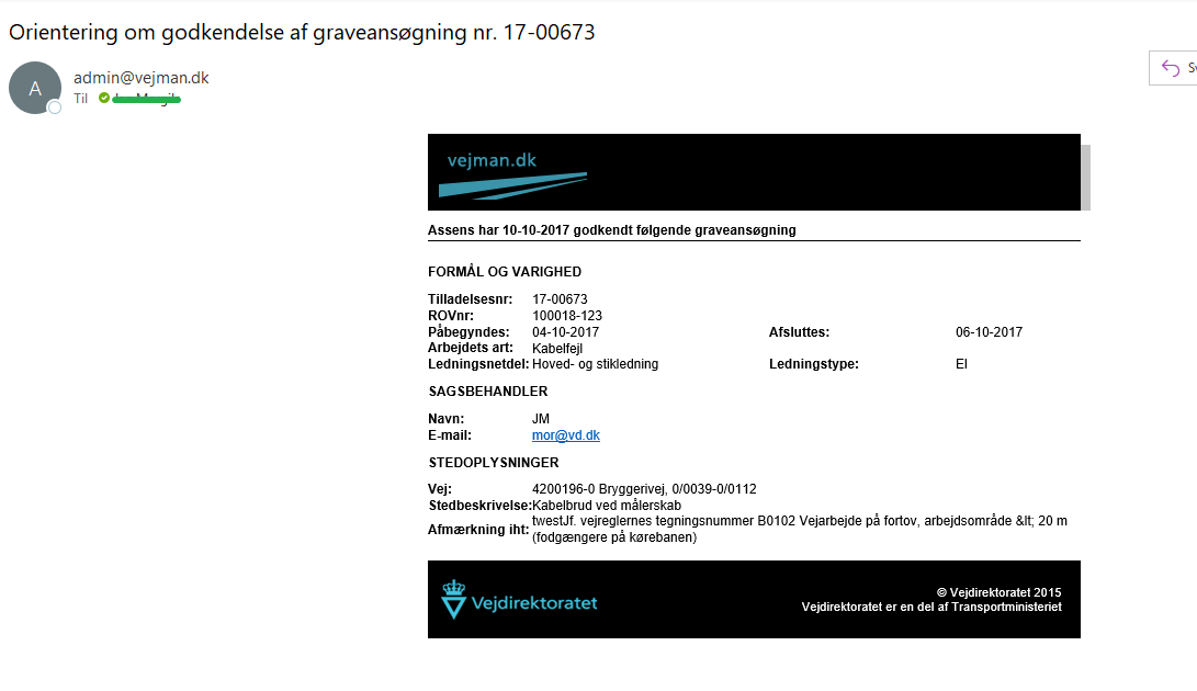 Mails i rov.vd.dk og vejman.dk