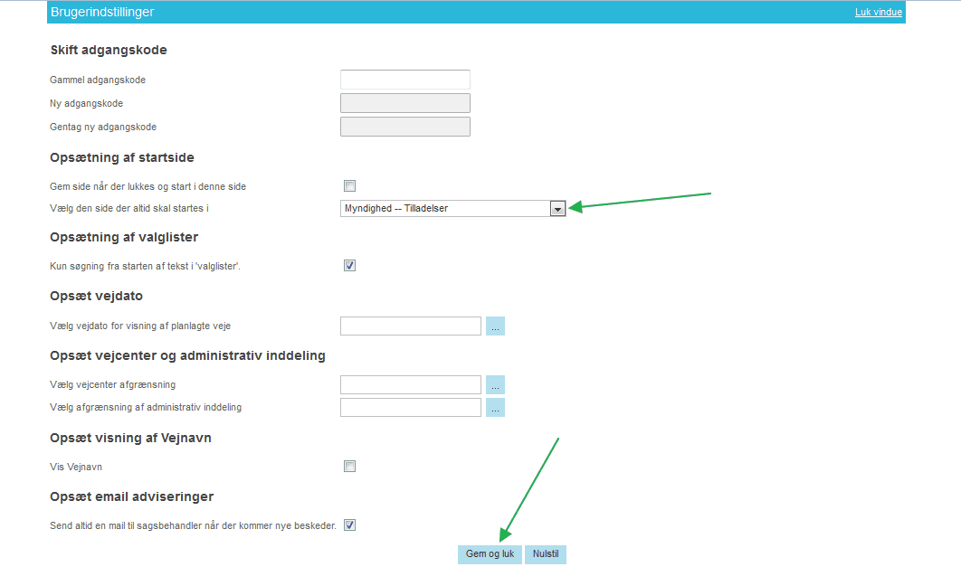 Første gang du logger ind på den nye version skal du ændre opsætningen VIA MENUPUNKTET Brugerindstillinger.