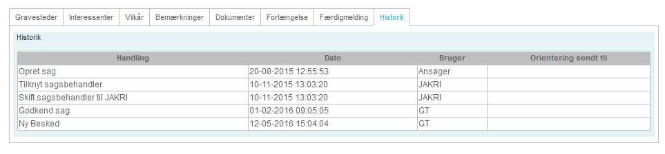 Man kan heraf se de konkrete arbejdsperioder på en sag.