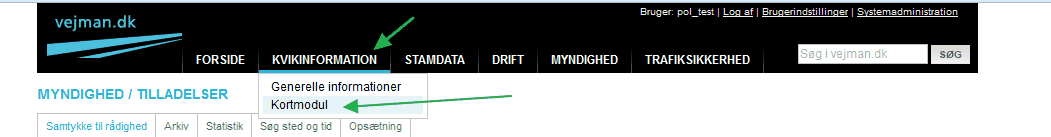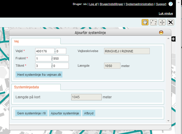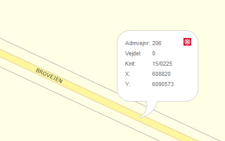 Du kan finde vejens administrative vejnummer og stationering på kortet ved at højreklikke på en vej.