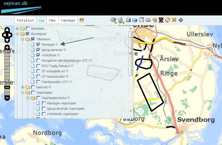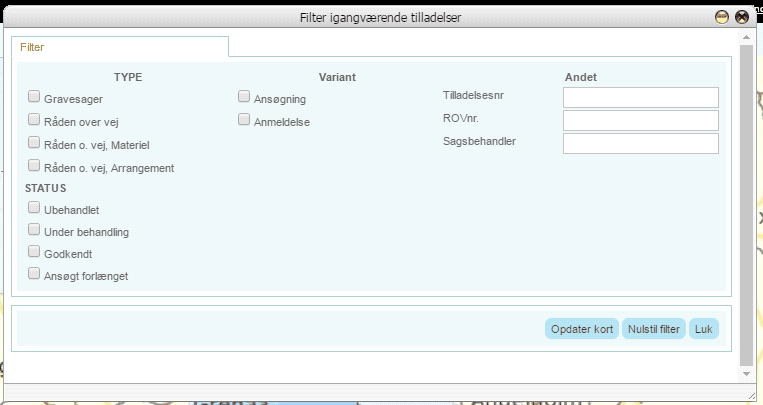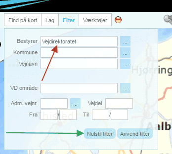 Start altid med at nulstille ’Filter’ i kort. Ellers kan du kun se sager der er sendt til Vejdirektoratet.