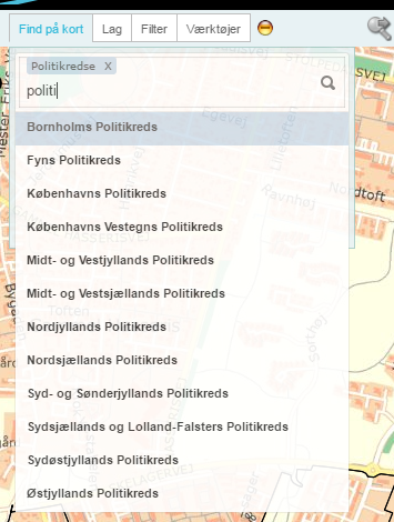 Skriv ’Politi’ i Find på kort og vælg herefter fra listen over politikredse.