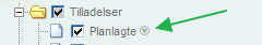 Yderligere filter på visningen i kortet kan sættes på ved at åbne den lille ’bold med en pil ’ i