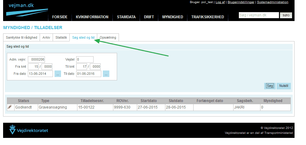 Søgning efter tilladelser på en specifik vej og et specifikt tidspunkt