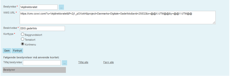 Konfigurering sker under Systemadministration under fanebladet Kort. Her er tilføjet valgmuligheden "Kortmenu".