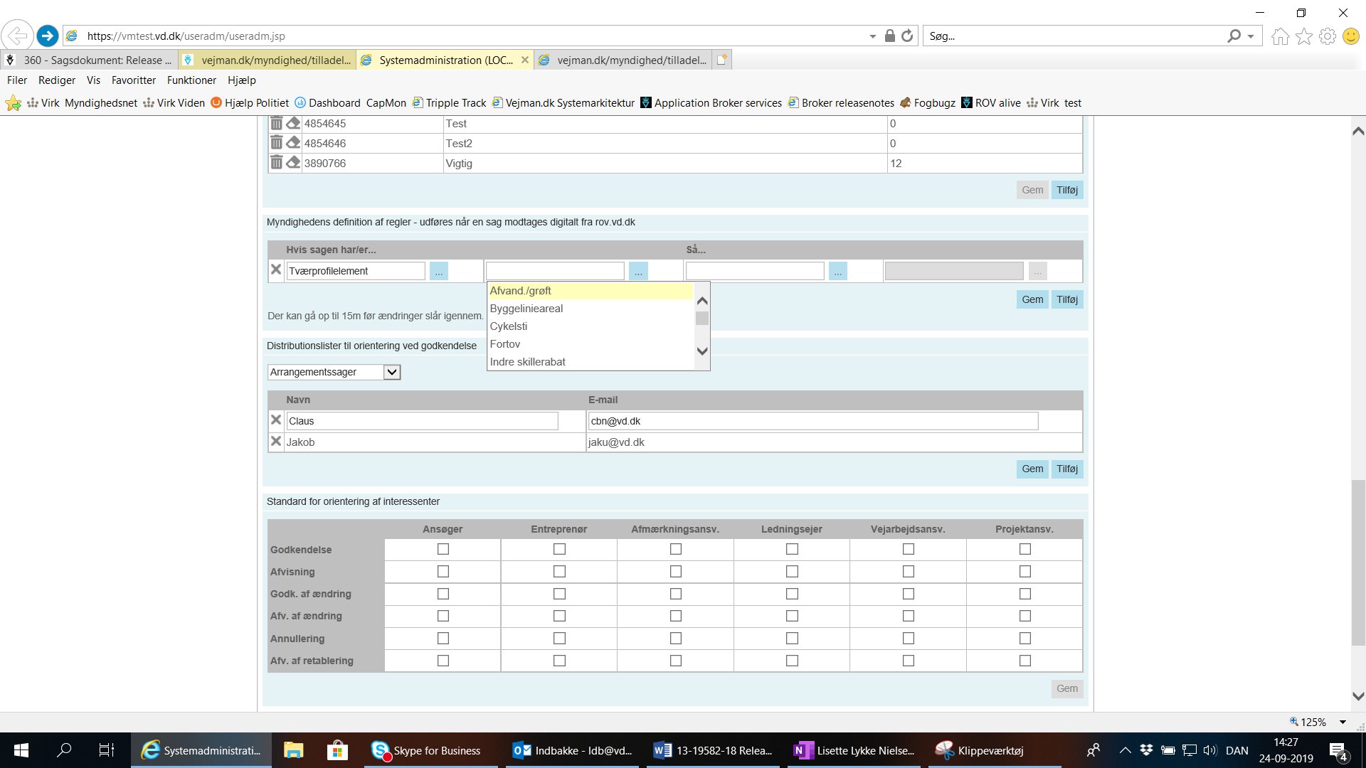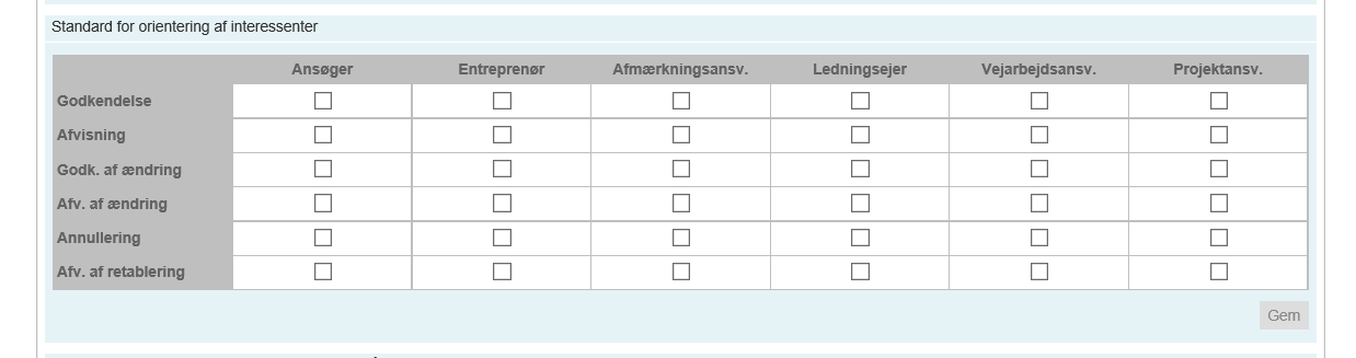 For at spare sagsbehandleren for klik samt tilføjelser af data, som systemet automatisk kan finde, har vi udvidet Lokaladministratorens muligheder. I stedet for hver gang at vælge, hvem der skal orienteres i forbindelse med den enkelte sag, kan lokaladministrator vælge, hvem der altid skal orienteres i forbindelse de forskellige tilstandsskift. Denne opsætning overføres til interessenter når sagen indlæses fra Broker.