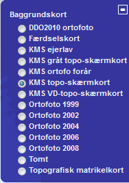 Under Find på kort-punktet kan du søge på Adm. vejnr., Vejnavn, Kommuner, Postnumre, Matr.nr. og Ejerlav samt Koordinater.