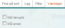 Her kan vælges måleredskab til at måle længde eller areal på de markeringer, man efterfølgende laver på kortet.